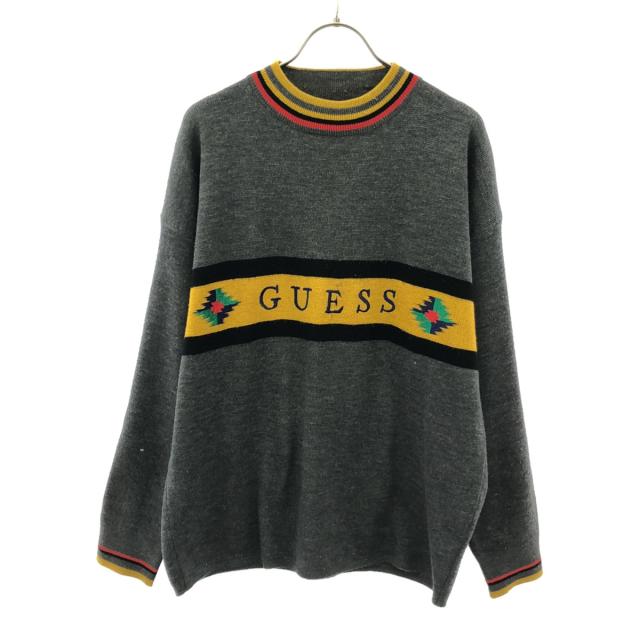 Guess ゲス ロゴ刺繍 長袖 クルーネック セーター S グレー ニット メンズ
