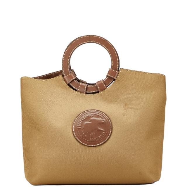 ハンティングワールド ロゴ ハンドバッグ トートバッグ カーキグリーン ブラウン キャンバス レザー レディース HUNTING WORLD 【中古】