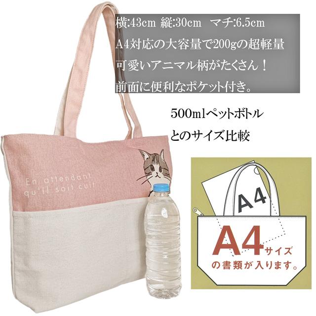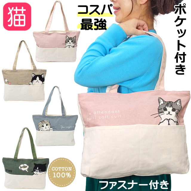 バッグ トートバッグ 1000円 猫柄 A4 布 ヨコ型 ファスナー付き 軽量 肩掛け 大容量 エコバッグ サブバッグ キャンバス 帆布 コットン 綿 通勤 通学 習い事 お稽古 猫雑貨 猫グッズ レディース かわいい おしゃれ ギフト プレゼント 誕生日
