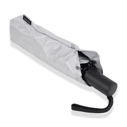 【日傘メンズ・高機能晴雨兼用傘】男性に向けて軽量化した逆戻り防止自動開閉折りたたみ日傘!自動開閉機能に不意な飛び出しを防ぐセーフティシャフト搭載で、一般的な自動開閉折りたたみ傘より安全に閉じられます。全長約61cm、収納時の長さ約30cm、親骨58cm、直径約97cmです。日差しから守ってくれる十分なサイズになっています。自動開閉傘でも300g未満の重量を実現しました!普通の手動傘とほぼ同じ重さになっております。毎日の携帯にも負担になりません!また、5級撥水加工で日傘だけではなく雨傘としてもご利用いただけます。安全性と利便性を考慮した高機能の一本!