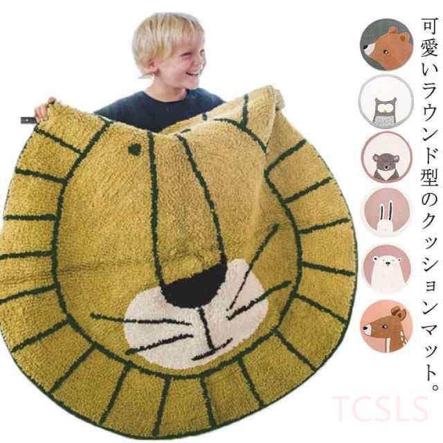 アニマル柄 ラウンドマット イブルマット ラウンドラグ ラグマット マット インテリア ラウンド型 ラグ 丸型 ウサギ すべり止め ズレない 動物 カーペット ライオン くま 円形 コアラ かわいい お昼寝マット