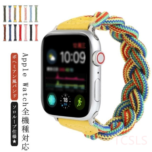 ソロループ バンド Apple Watch 交換バンド 編み込み ナイロンバンド ボヘミアン風 アップルウォッチ バンド ナイロンベルト ベルト バンド 交換ベルト 腕時計ベルト iWatch用 バンド 交換 Apple Watch iWatch SE iWatch 6 5/4/3/2/1 38mm 40mm 42mm 44mm 送料無料