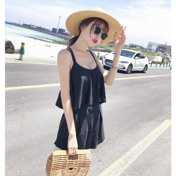 水着 ワンピース 水着 レディース ワンピース オールインワン セクシー フリル ショートパンツ 無地 パッド付き ワイヤー入り