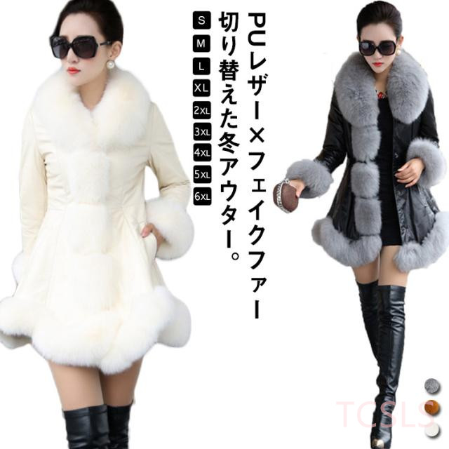 全3色×9サイズ!冬物 フェイクファー コート レディース レザーコート ケープ マント 切り替え アウター コート ファーコート フェイクファー PUレザー ロングコート 厚手 あったか 防寒 冬服 おしゃれ
