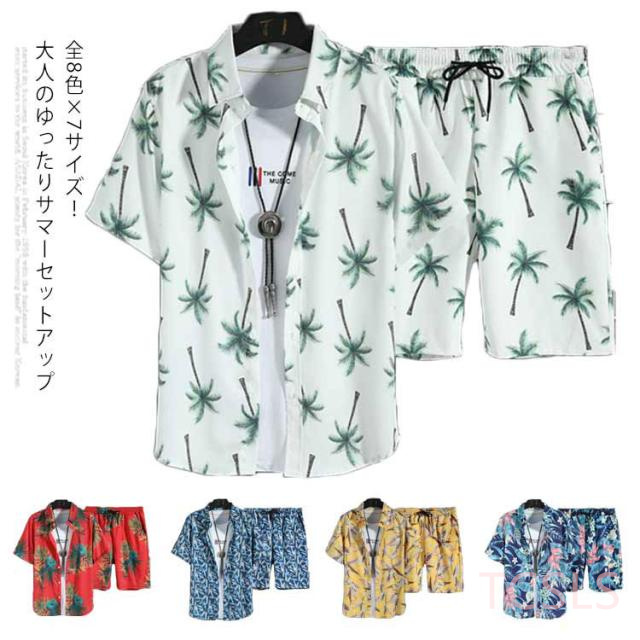 アロハシャツ セットアップ メンズ 花柄 総柄 半袖シャツ ハーフパンツ ショートパンツ 2点上下セット フラワー トップス カジュアルシャツ ショーツ 短パン 半ズボン M-5XL 夏服 送料無料 涼しい 男性 衣装 ハワイ 休日を過ごす