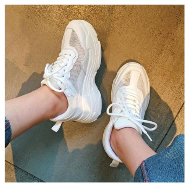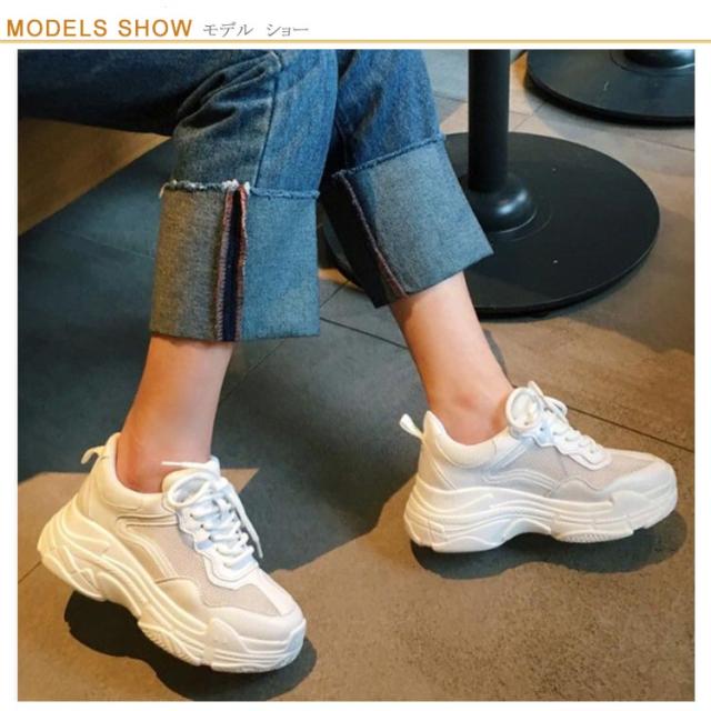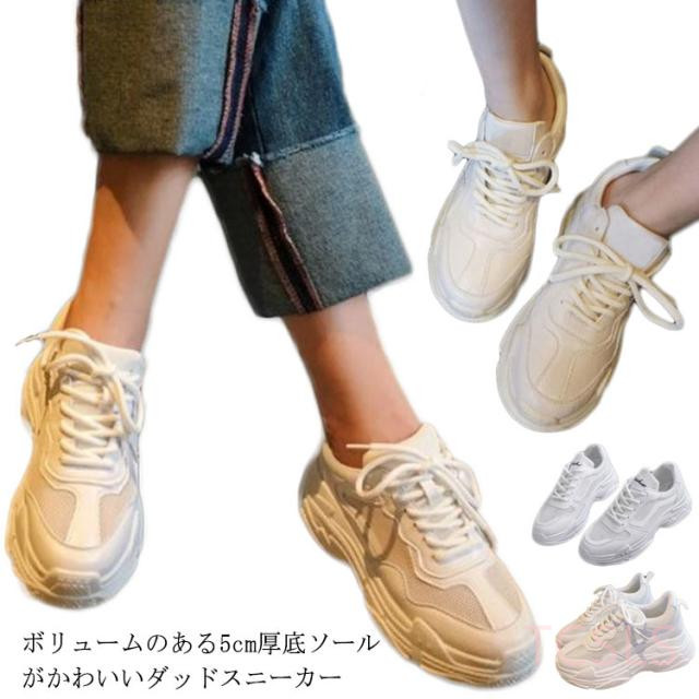 | ボリュームのある5cm厚底ソールがかわいいダッドスニーカー 軽くて通気性に優れたメッシュ素材で、足蒸れの悩みから解消され つま先も自然なソールアップでスッキリ脚長効果。 厚みのあるグリップ力に優れた防滑ソールで悪天候時も安心。 足首もしっかり支えるホールド感・クッション性のある履き心地です | |