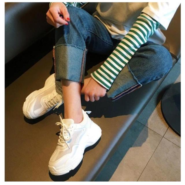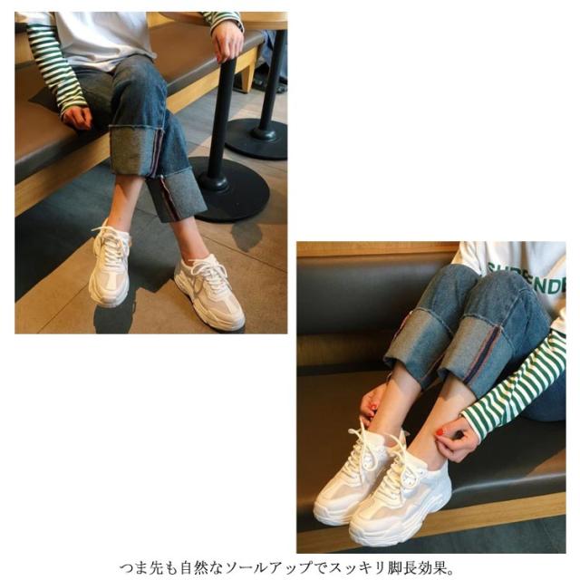防滑ソール スニーカー 靴 シューズ 送料無料 ダッド かわいい インヒール おしゃれ レディース 人気 ウォーキングシューズ 美脚 身長アップ 足長 レースアップ 滑らない 春 通学 歩きやすい 厚底