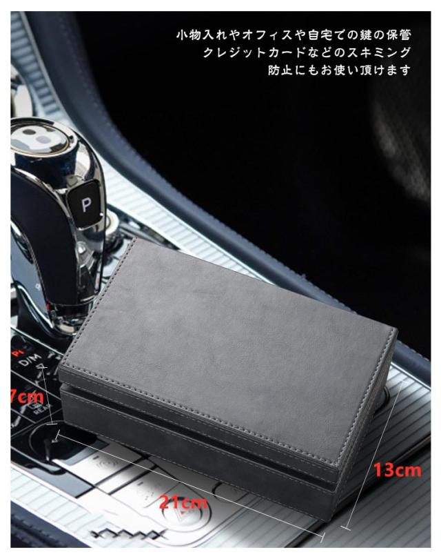 | リレータックの被害から愛車を守る電波遮断ケースです。 あらゆるの信号を遮断できるので、自分の情報や財産などを保護することができます。 ボックス内部に電波を遮断する素材を使用、中に入れるだけで電波を遮断しリレーアタックを防ぎます。 ポーチより、ケース型にデザインされました。容積を広げられ、多人使用も各サイズのキーの納入も可能です。 小物入れやオフィスや自宅での鍵の保管、クレジットカードなどのスキミング防止にもお使い頂けます。 プレゼントとしても、自宅に置かれて使ても優れます。 | |