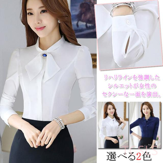 ブラウス 大きいサイズ 長袖ブラウス 長袖 レディース リボン付き フォーマル 通勤 入園式 シャツ スーツインナー スリム ビジネス シン