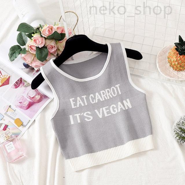 英字ロゴ ニットトップス レディース ノースリーブ タンクトップ 上着 タイト サマーニット ショート丈 ヘソ出し 重ね着 セクシー 女性用 インナー 20代 30代