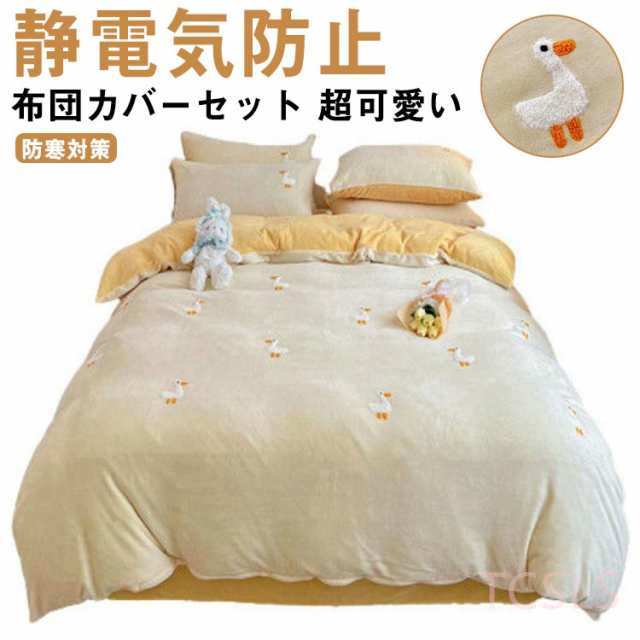 布団カバーセット 3点 シングル 厚手 超可愛い アヒル柄 3点セット 掛け布団カバー フラットシーツ 枕カバー 子供 大人 肌触り 静電気防止 洗える 防寒対策 寝具カバーセット 誕生日プレゼント