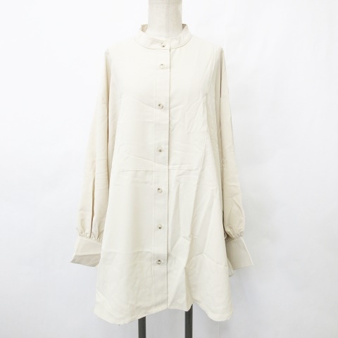 【中古】未使用品 ノアル NOAHL ブラウス 長袖 ロング スタンドカラー スリット リボン ベージュ F レディース