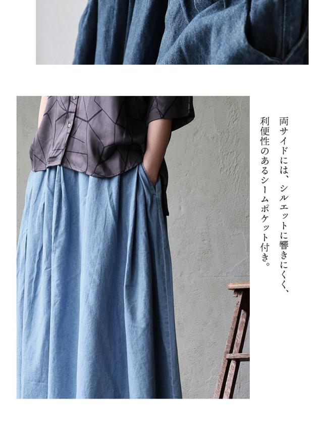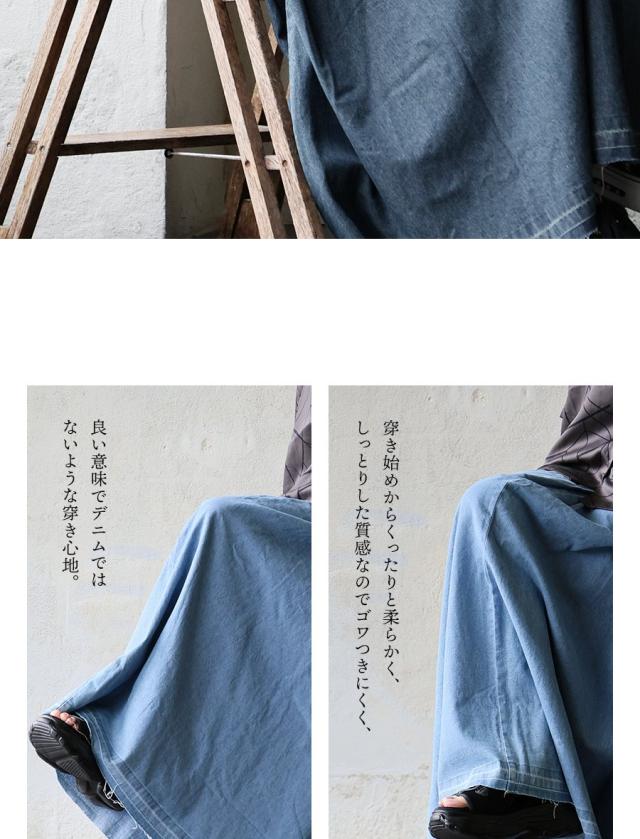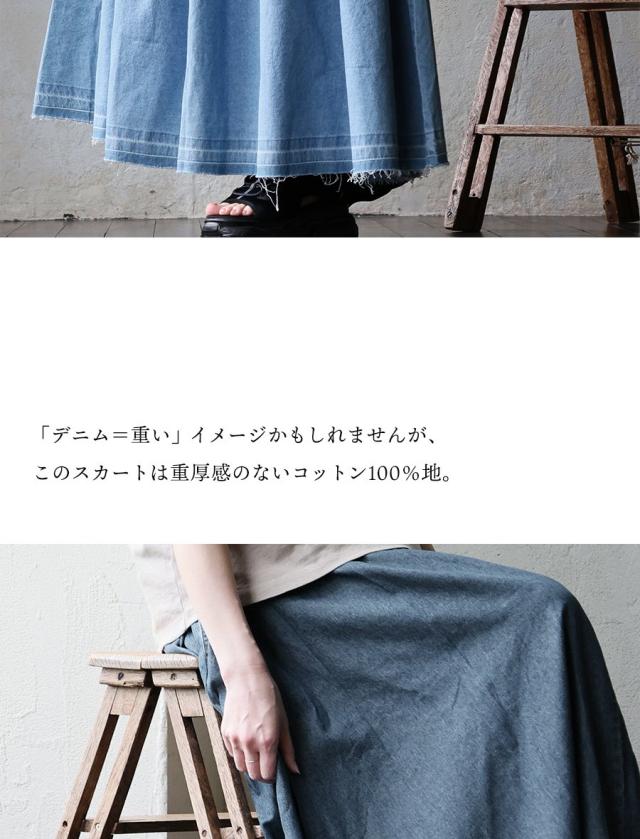 ・「デニム=重い」イメージかもしれませんが、このスカートは重厚感のないコットン100%地。