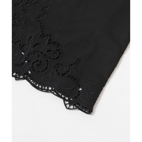 フロントや裾にはレースのようなスカラップ刺繍をあしらい、さりげない華やかさをプラス。