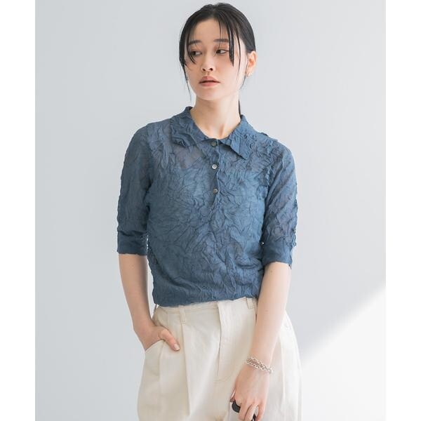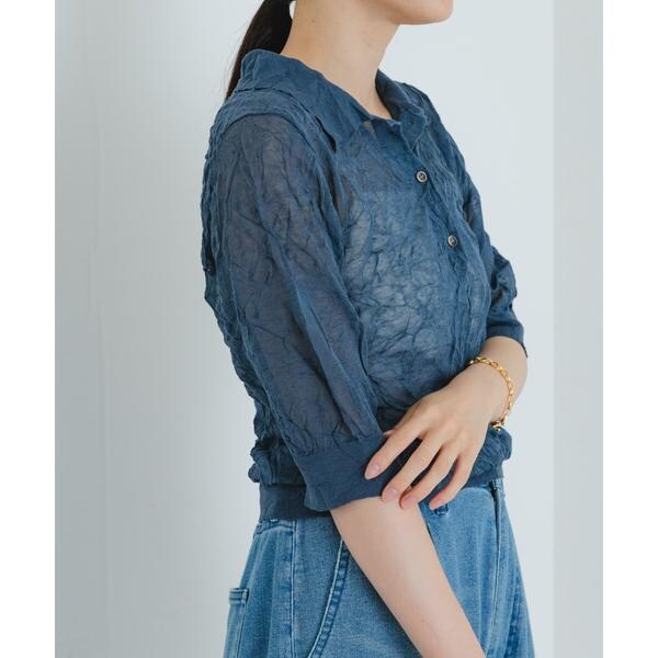 シアー素材にワッシャー加工を施した、トレンド感たっぷりのニット。