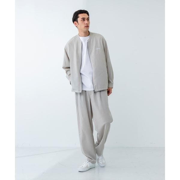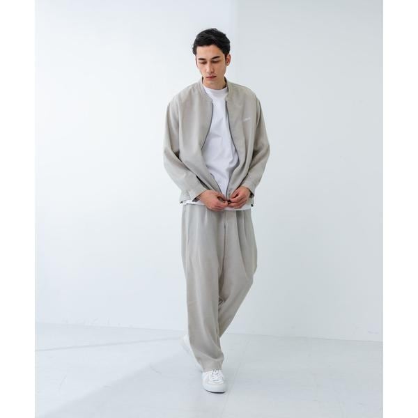 ・同素材のブルゾン、シャツとセットアップで統一感のあるスタイリングに