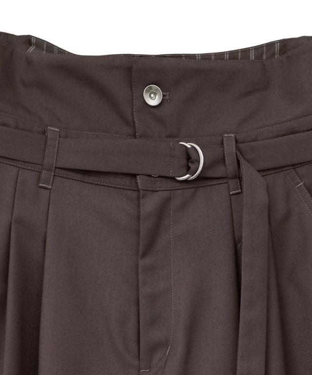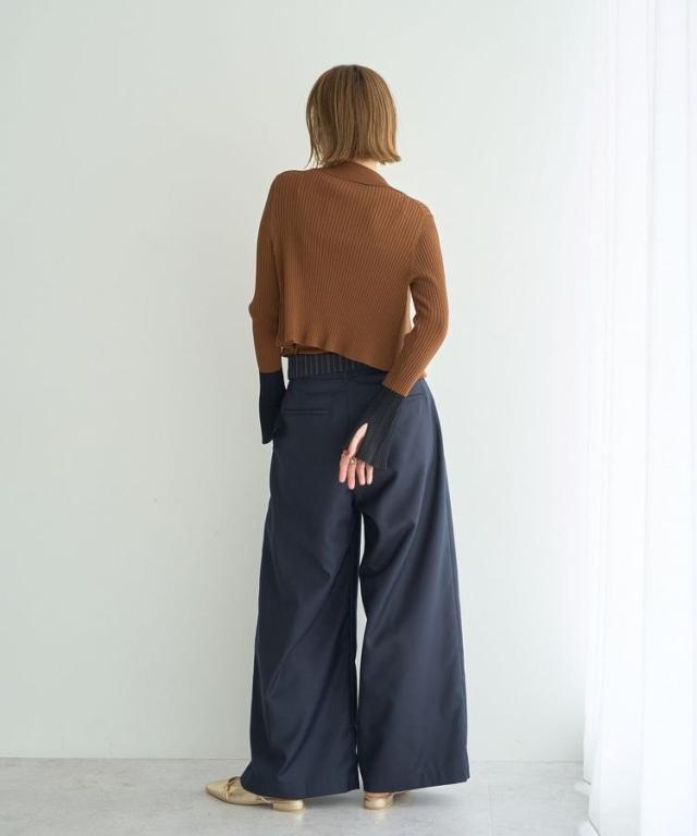 ウエストを折り返しても着用できる2WAY仕様。裏地のストライプ柄が覗きマニッシュな着こなしを後押しします。