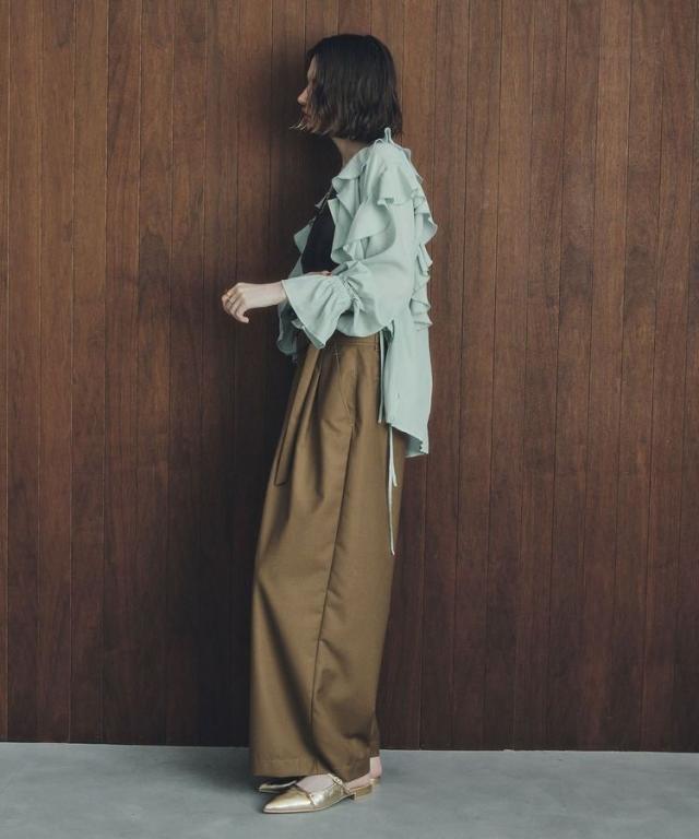 フェミニンなブラウスを合わせたミックススタイルにもおすすめのアイテムです。