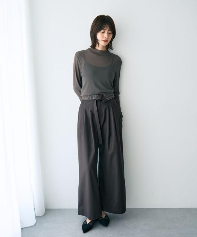 今年のワードローブに取り入れたいベルト付きタックワイドパンツ。