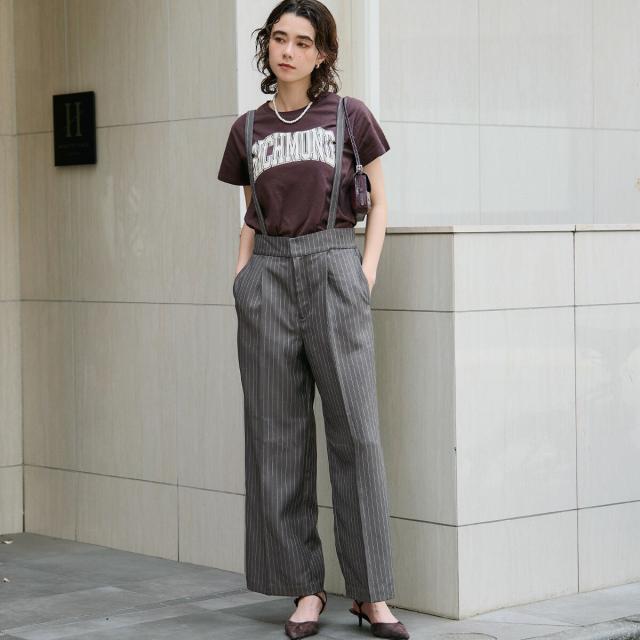 上品な雰囲気のヘリンボーン柄が映える、着こなし自在の2wayサロペット