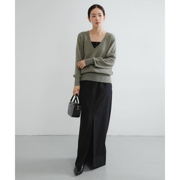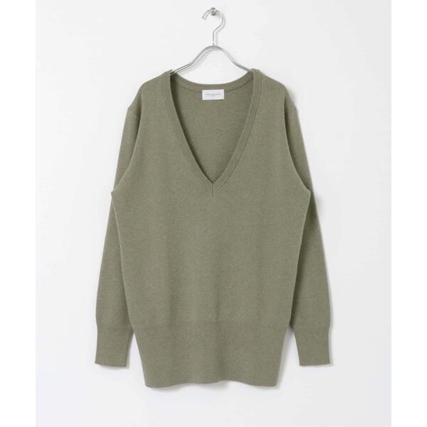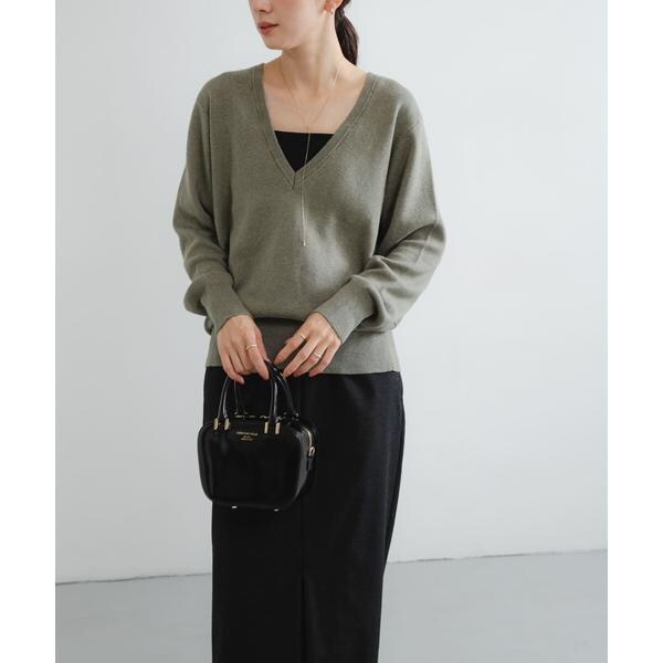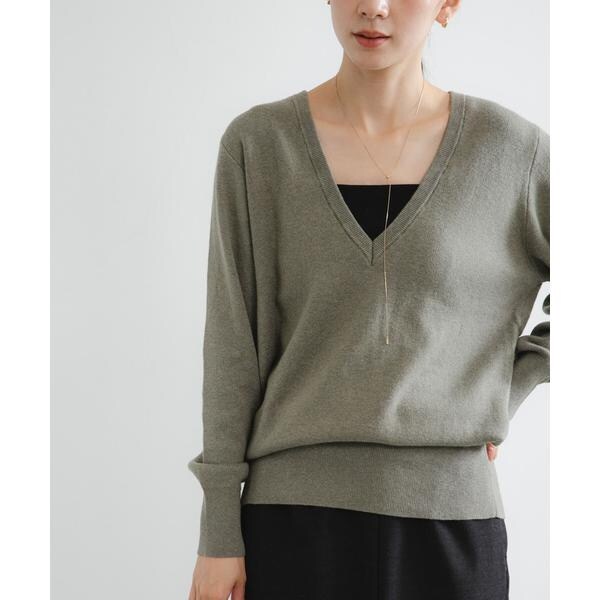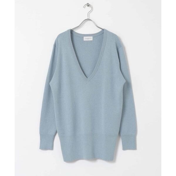 深Vネックと長めのチュニック丈がポイントのニットは、カシミヤコットンの素材を使用した着心地の良いアイテム。