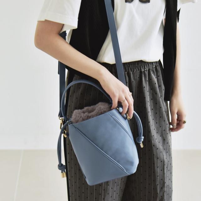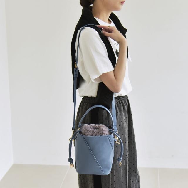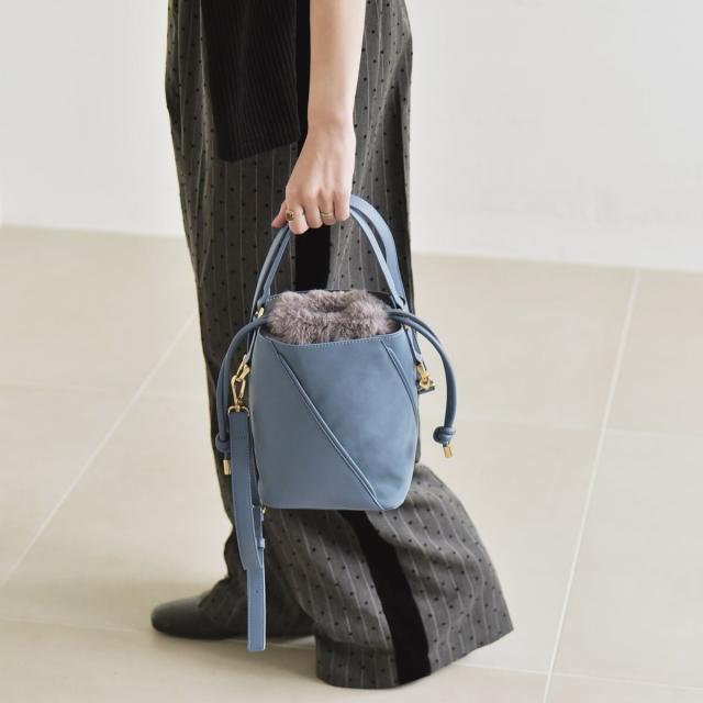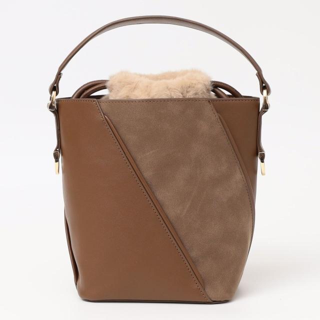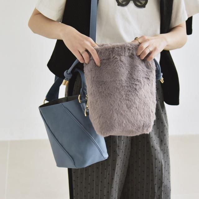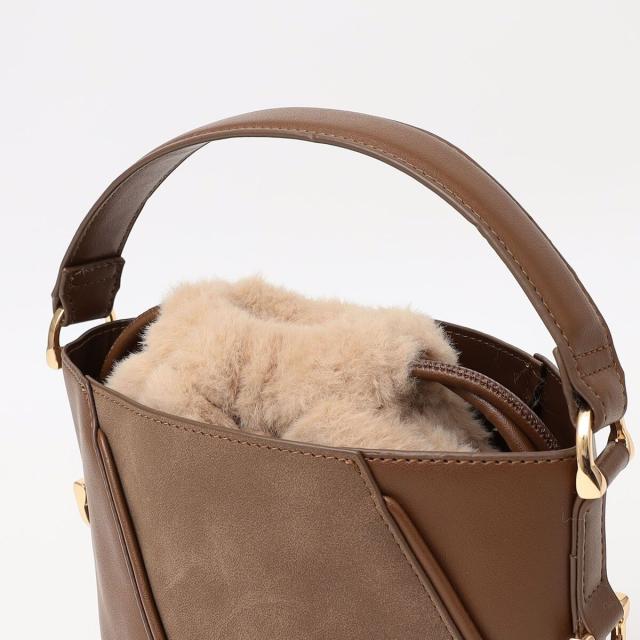 quaranciel: 2way コンビ バケツ ショルダーバッグ × フェイクファー 巾着