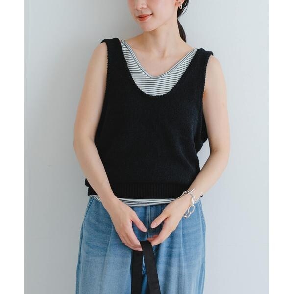 柔らかく、自然な風合いが魅力の綿ブークレ素材でお作りした、タンクトップニットベスト。