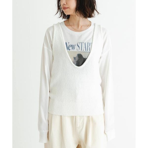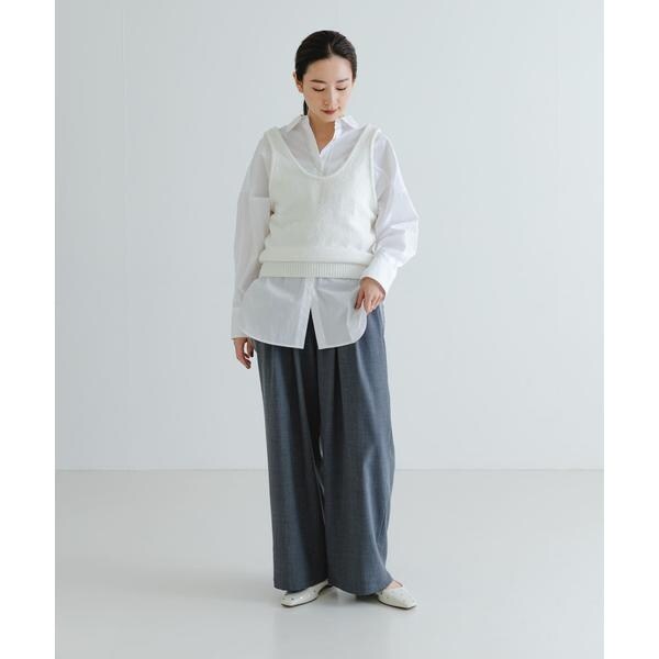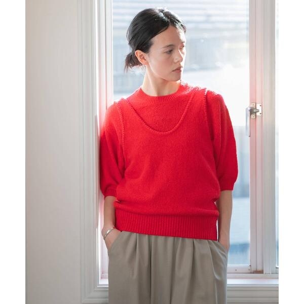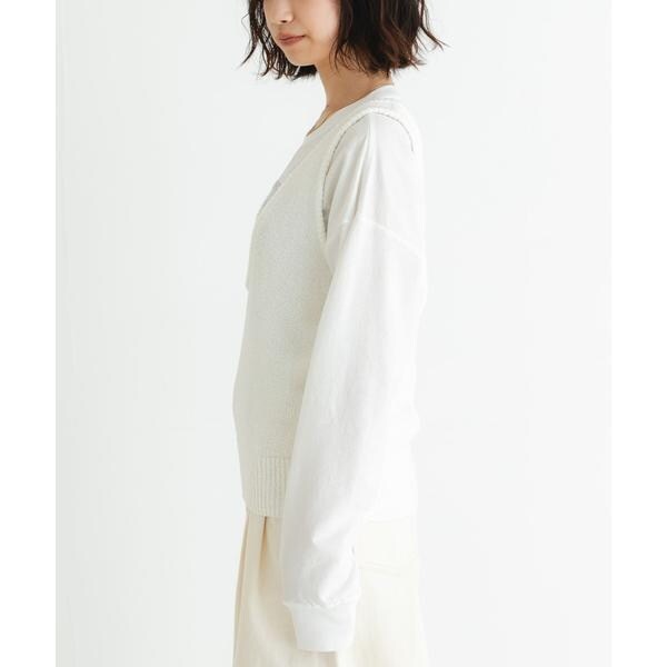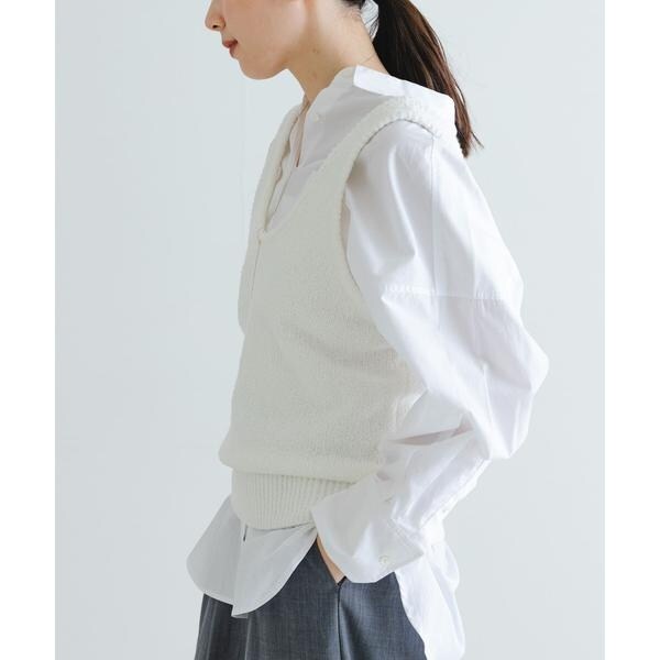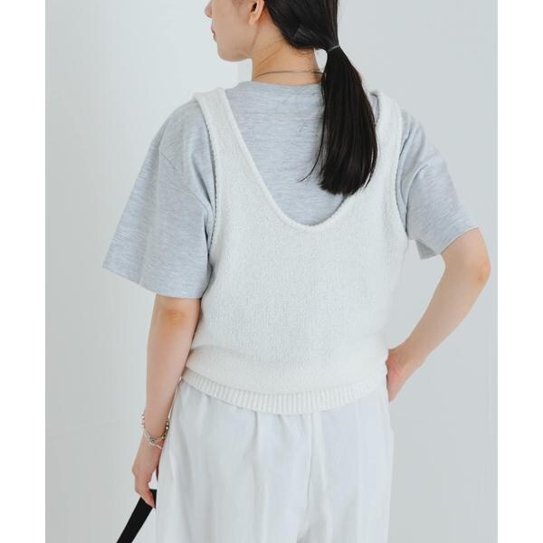 アームホールを広くしているので、ボリュームのあるトップスとも合わせやすく、お手持ちのアイテムに重ねるだけでスタイリングを格上げしてくれるアイテムです。