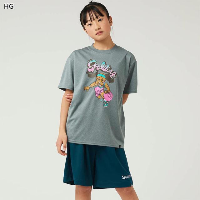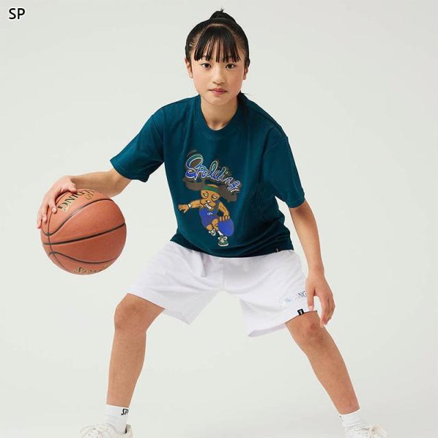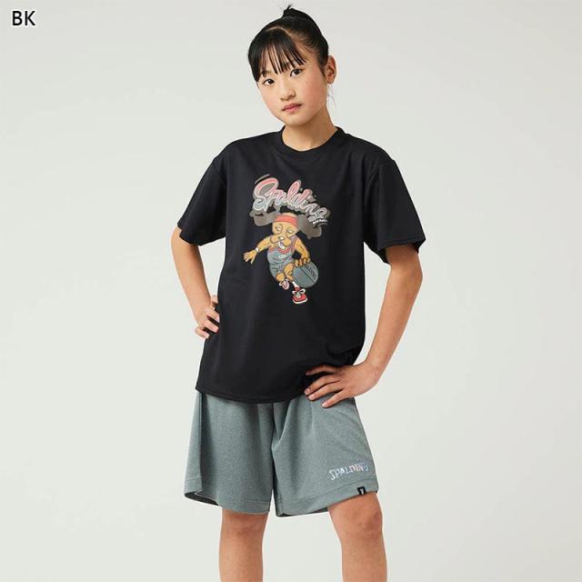 スポルディング スポーツ ジュニア キッズ ジュニアTシャツ ビーグル レッツ プレイ フープス バスケットボール ウェア 競技 吸水速乾 UVカット ブラック 黒 グレー グリーン 灰色 緑 spalding SJT24162