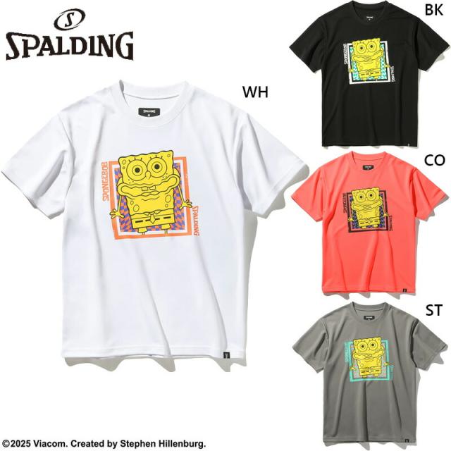 スポルディング スポーツ ジュニア キッズ Tシャツ スポンジ・ボブ チェッカーフラッグ バスケットボール ウェア トップス 半袖 競技 吸水速乾 ホワイト 白 ブラック 黒 ピンク 送料無料 spalding SJT25063S