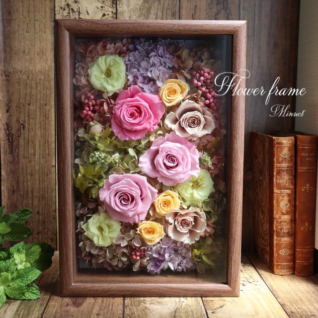 フレームフラワー フラワーフレーム プリザーブドフラワー 誕生日 ギフト おしゃれ 敬老の日 プレゼント 花 定年退職祝い 男性 女性 開店祝い 開店祝いの花 開業祝い 開院祝い 「メヌエット」