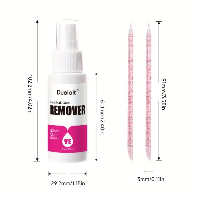 30ml アップグレードフォーミュラ スプレー グルーリムーバー withスティック、15秒クイックリムーバー、アクリルネイル&フェイクネイル用、やさしい爪やすり、天然爪に安全