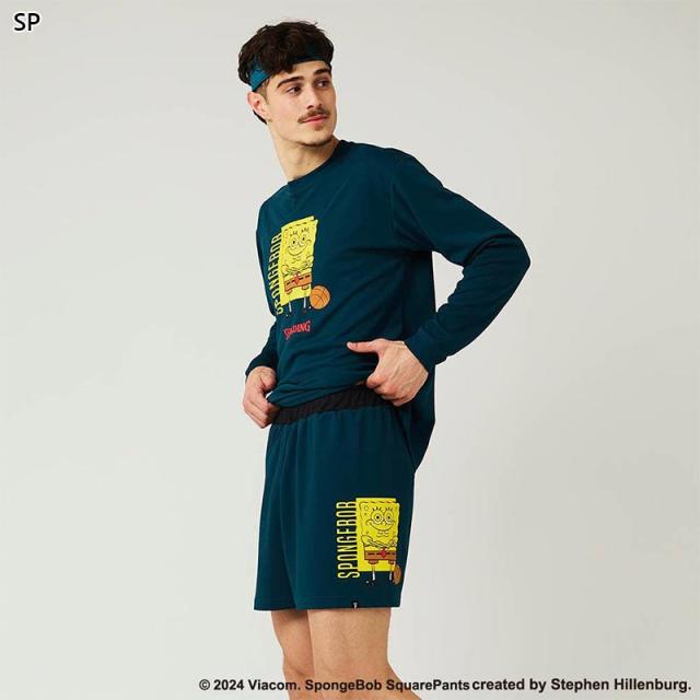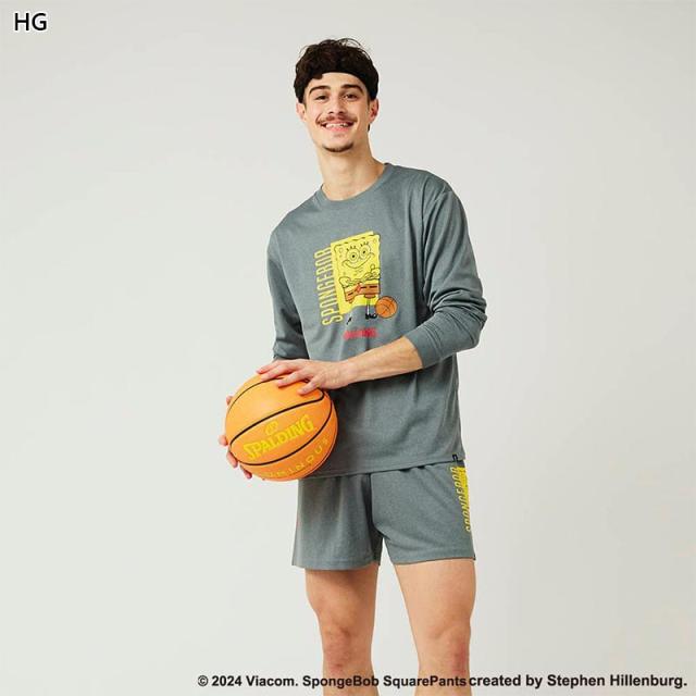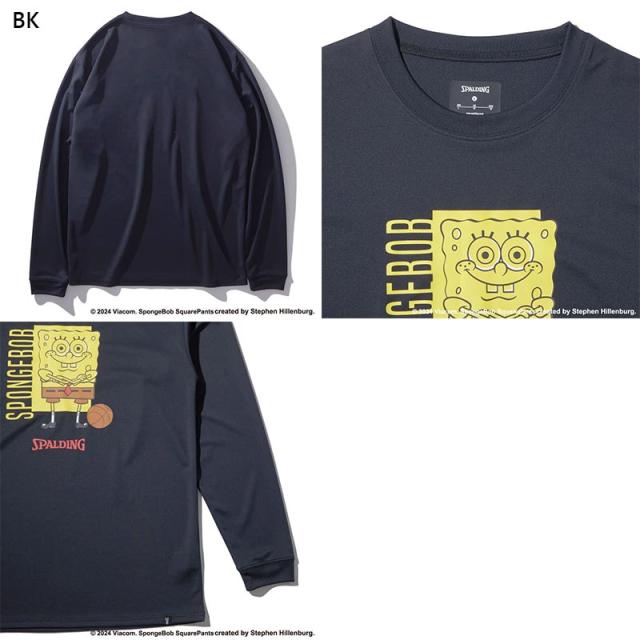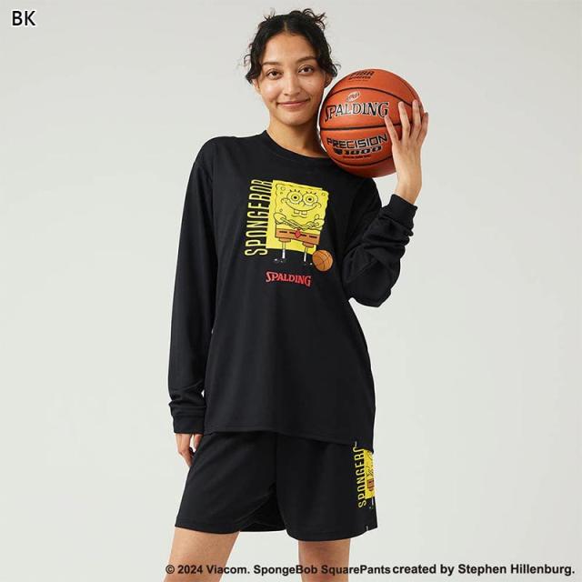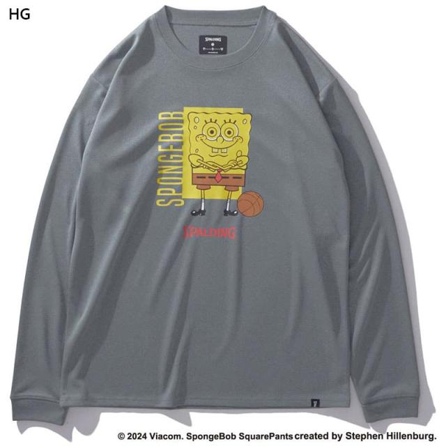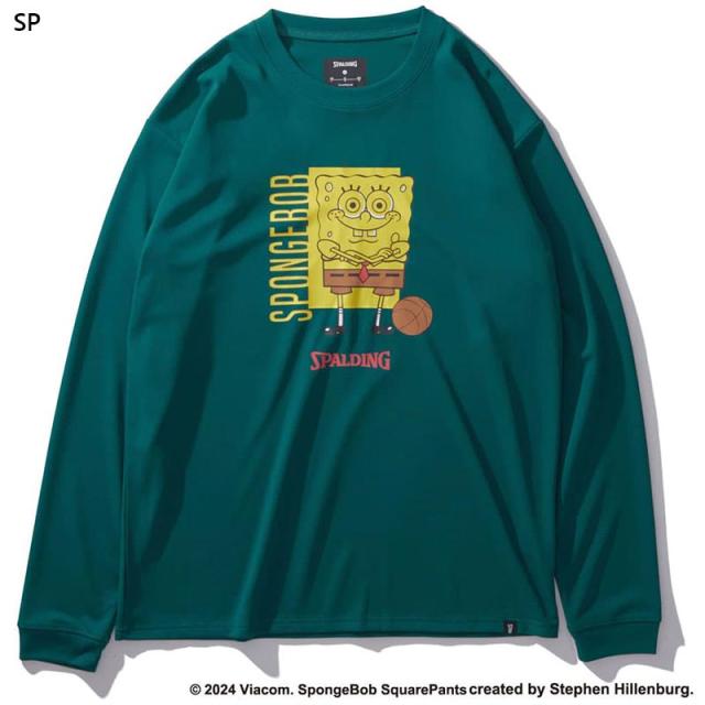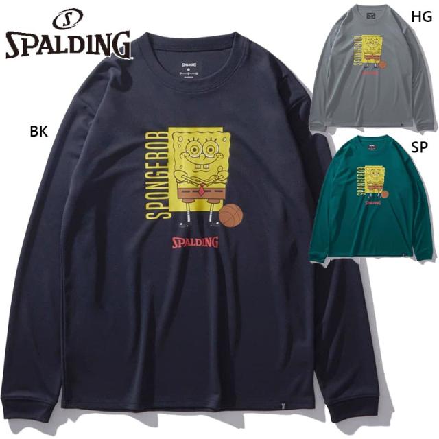 スポルディング スポーツ メンズ レディース ロングスリーブTシャツ スポンジ・ボブ バスケットボール フリーク ウェア 競技 吸水速乾 UVカット ブラック 黒 グレー グリーン 灰色 緑 送料無料 spalding SMT24142S