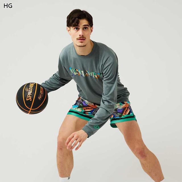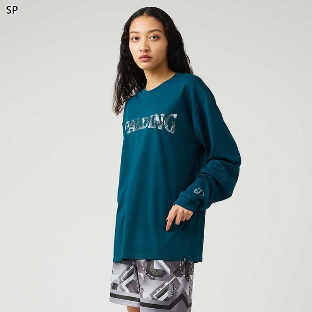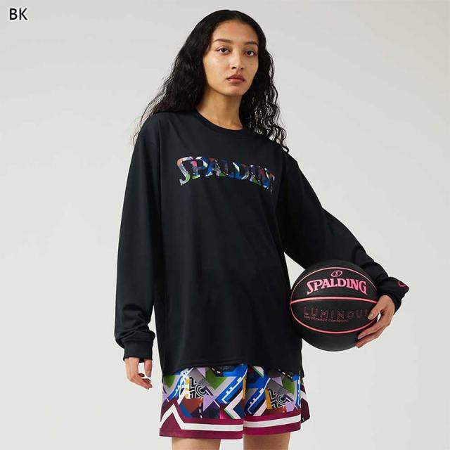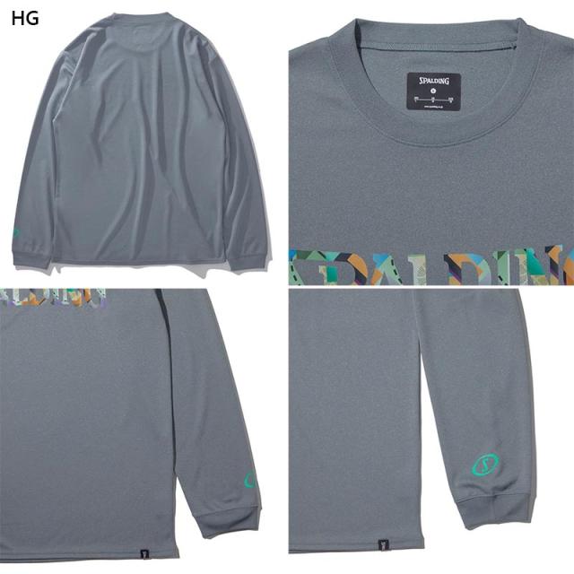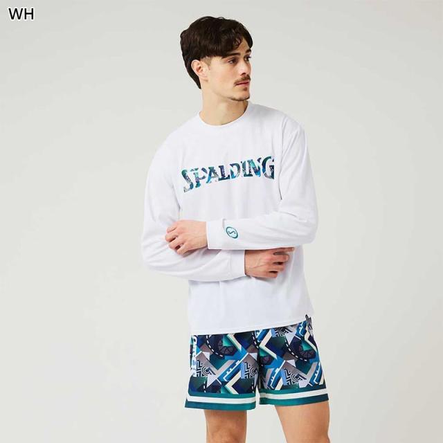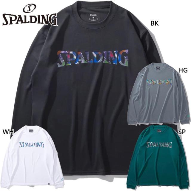 スポルディング スポーツ メンズ レディース ロングスリーブTシャツ ジオメトリック ロゴ バスケットボール ウェア 競技 長袖 吸水速乾 UVカット ホワイト 白 ブラック 黒 グレー グリーン 灰色 緑 送料無料 spalding SMT24107