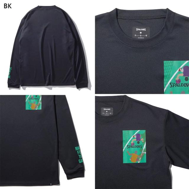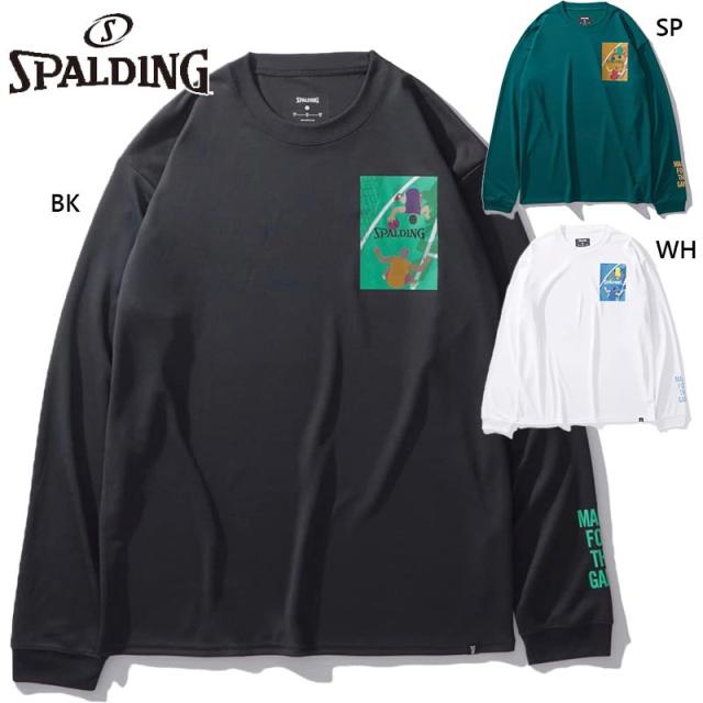 スポルディング スポーツ メンズ レディース ロングスリーブTシャツ ワン オン ワン バスケットボール ウェア 競技 吸水速乾 UVカット ホワイト 白 ブラック 黒 グリーン 緑 送料無料 spalding SMT24114
