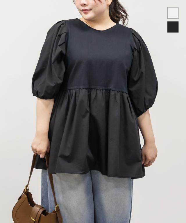 大きいサイズ/レディース/3L/4L/前後2WAYバルーンスリーブブラウス