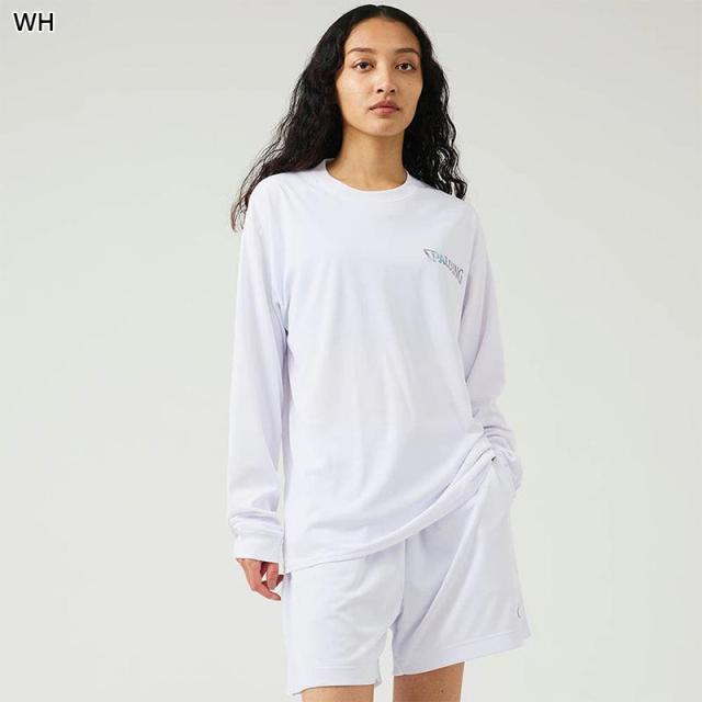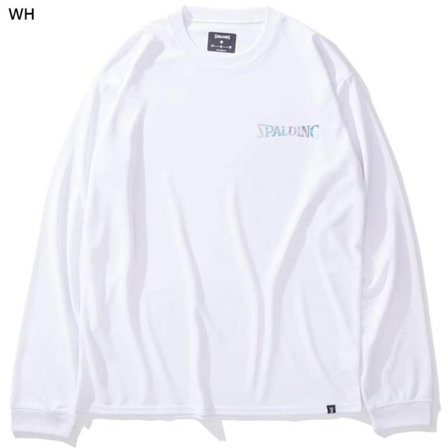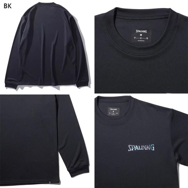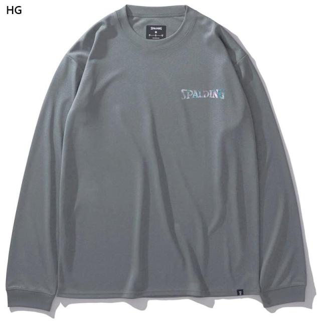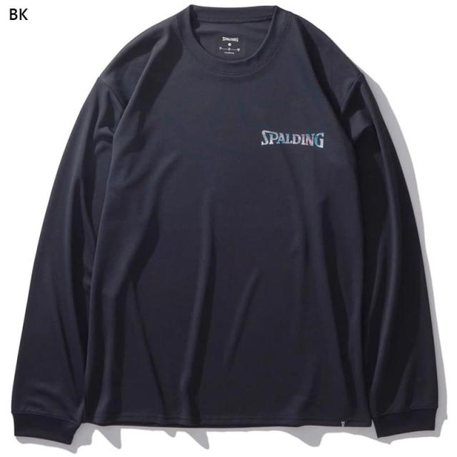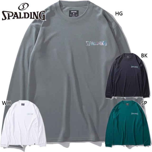 スポルディング スポーツ メンズ レディース ロングスリーブTシャツ ホログラム ワードマーク バスケットボール ウェア 競技 吸水速乾 UVカット ホワイト 白 ブラック 黒 グレー グリーン 灰色 緑 送料無料 spalding SMT24177