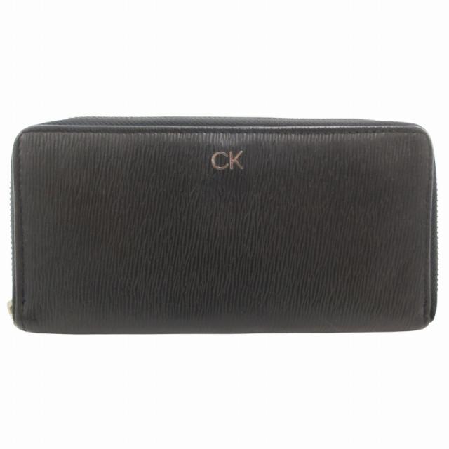 【中古】シーケーカルバンクライン ck Calvin Klein 長財布 ウォレット ラウンドファスナー ロゴ レザー
