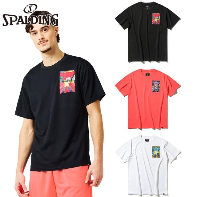 スポルディング スポーツ メンズ レディース Tシャツ ポップアート コラージュ バスケットボール ウェア 競技 トップス 半袖 吸水速乾 UVカット ホワイト 白 ブラック 黒 ピンク 送料無料 spalding SMT25011
