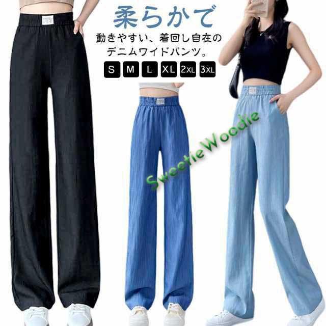 デニムワイドパンツ 爽やか 涼しい デニムワイドパンツ 夏 ジーンズ デニムパンツ 清涼感 接触冷感 パンツ ワイドパンツ デニム ウエストゴム ジー