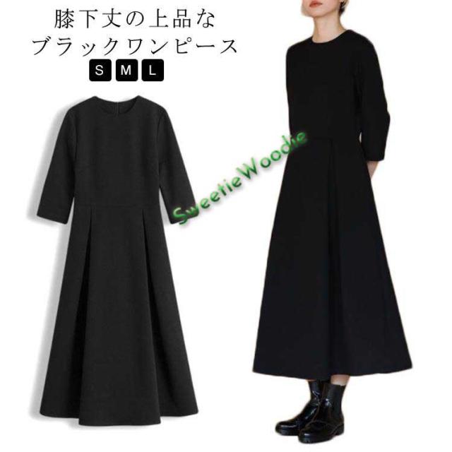 | 膝下丈の上品なブラックワンピース クールネックがデコルテ部分を綺麗に見せてくれます。 ウエストのタックフレアのデザインが、上品なフレアシルエットに仕上げ、大人フェミニンな印象に。 1枚でコーディネートが完成。 普段使いはもちろん結婚式や卒入園式などのフォーマルシーンにもオススメの1枚。 | |