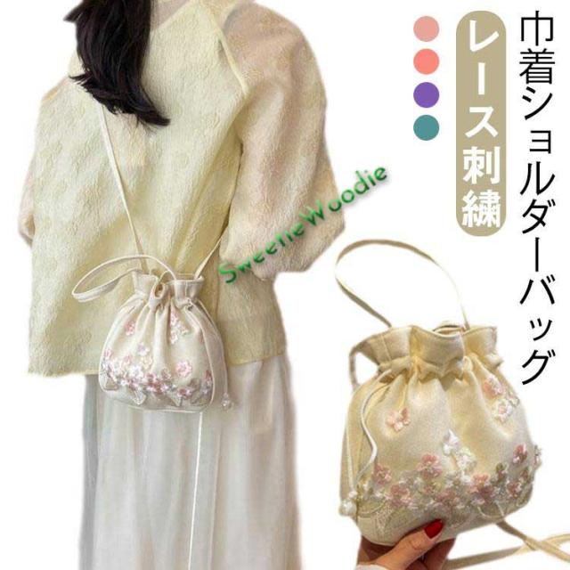 布製 レース刺繍 漢服 ミニバッグ 巾着バッグ ポシェット 花火大会 ショルダー 手提げ かわいい ショルダーバッグ 和装バッグ チャイナ風 斜めがけ