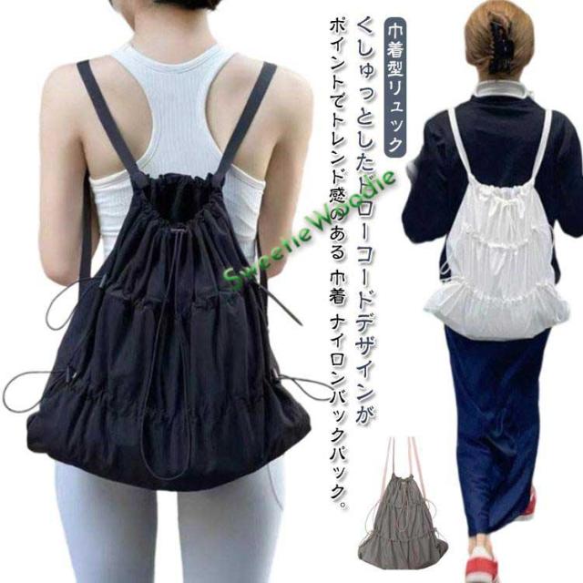 おしゃれ 軽量 大人 ナップサック 韓国 大きめ 巾着 大容量 無地 リュック レディース 春 ナイロン 女子 バッグ 軽い 高校生 バックパック 可