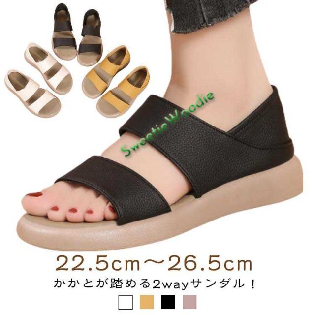 コンフォートサンダル レディース 2way かかとが踏める サンダル フラット 歩きやすい 夏 スリッパ ローヒール かかと付き シューズ サマー 2