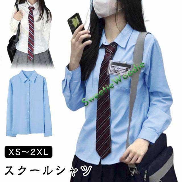 大学生 スクールシャツ レディース 長袖 ワイシャツ 水色 制服 学生 中学生 高校生 シャツ 通学 シンプル 長袖 春 女子中学生 秋 春服 jk