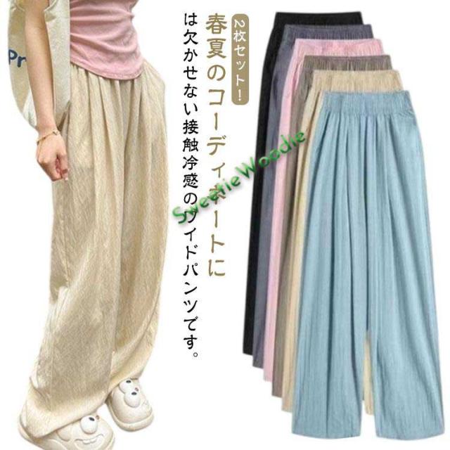 2枚セット イージーパンツ ひんやり 2枚セット 春夏 夏物 レディース ワイドパンツ 涼しい 薄手 速乾 涼感 ガウチョパンツ ボトムス ゆったり