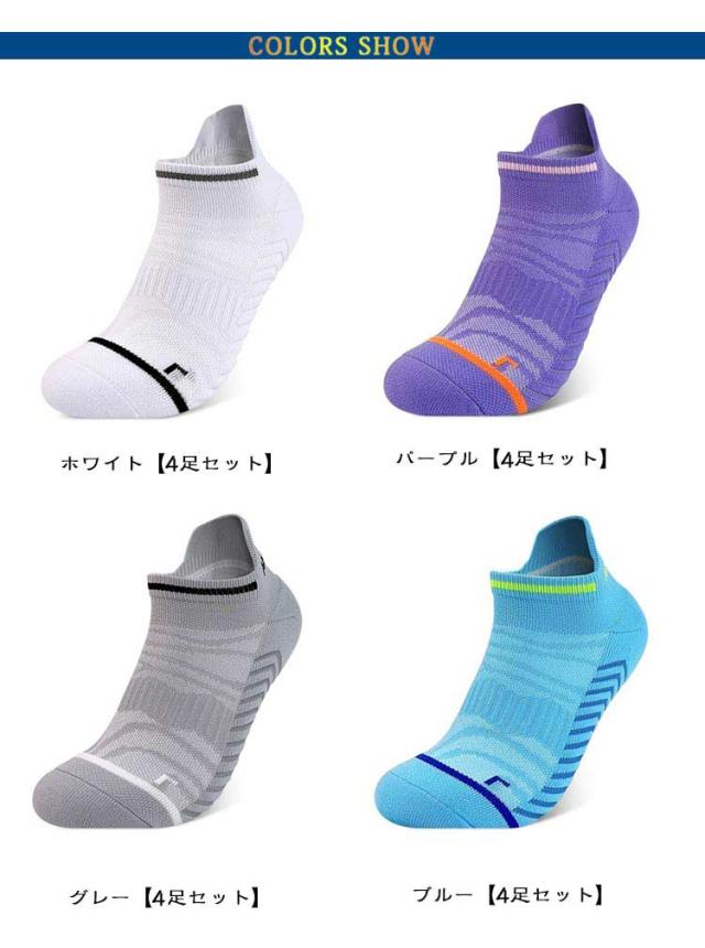 【4足セット】 スポーツソックス メンズ レディース くるぶし 靴下 ソックス セット ショートソックス ランニングソックス くるぶしソックス ショート フィット 着圧 靴下 厚手 吸汗 速乾 滑り止め 脱げにくい 浅履き 通気性 春 夏 秋 冬 スポーツ マラソン 夏用 冬用