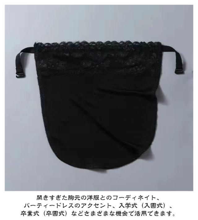 | 胸元のチラ見え防止対策に ブラカバー 胸の谷間を隠す 3枚セット ブラジャーのストラップに引っ掛けてスナップボタンを留めるだけの、着用簡単なブラカバーです。 首周りが広くあいた洋服もこれがあれば安心できます。 前かがみになった時や胸元が大きくカットされたデザインも心配なくおしゃれを楽しめます。 シンプルなのでカジュアルからパーティまでシーンを選ばす使えます。 ピンポイントで隠せるので「着膨れがイヤで谷間部分だけ隠したい」「暑がりなので重ね着はちょっと」という方、また「プチプラで何色か揃えたい」という方にぴったりなアイテムです。 普段使いは勿論、ドレスアップの時にも着用できる便利なアイテムです。 開きすぎた胸元の洋服とのコーディネイト、パーティードレスのアクセント、入学式(入園式)、卒業式(卒園式)などさまざまな機会で活用できます。 【こちらの商品はカバーのみです。】 | |