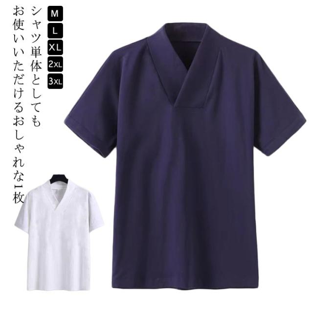 半襦袢 Tシャツ メンズ 着物 作務衣 浴衣 インナー 男性用 肌着 肌襦袢 衿付き 襟付き ストレッチ 和装下着 Vネック カットソー 洗える 襦袢 tシャツ プルオーバー レディース 男女兼用 大人 ホワイト ネイビー 送料無料