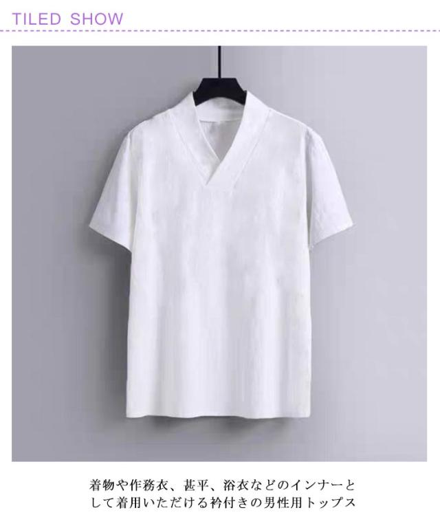 | シャツ単体としてもお使いいただけるおしゃれな1枚 着物や作務衣、甚平、浴衣などのインナーとして着用いただける衿付きの男性用トップス | |